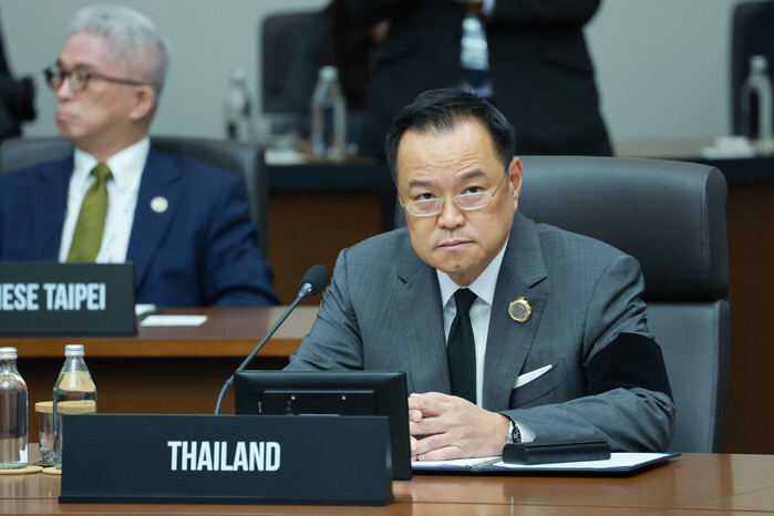 Thai Prime Minister Anutin Charnvirakul attends the first session of the Asia-Pacific Economic Cooperation summit at the Gyeongju Hwabaek International Convention Center in the southeastern South Korean city of Gyeongju on Oct. 31, 2025. (Yonhap)