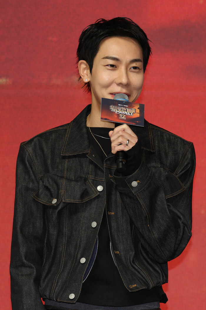 South Korean rapper Loco speaks during a publicity event in Seoul on Jan. 15, 2026, to promote the survival audition program "Show Me The Money 12." The program's first episode will be aired by the local cable TV network Mnet the same day. (Yonhap)