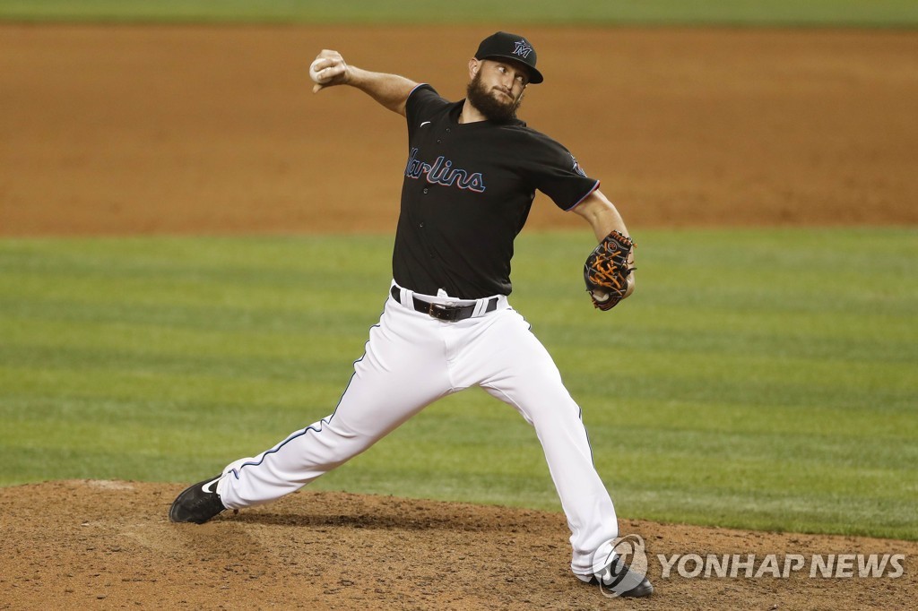 | ▲ In this Getty Images file photo from Aug. 14, 2020, Josh A. Smith of the Miami Marlins pitches against the Atlanta Braves in the top of the ninth inning of a Major League Baseball regular season game at Marlins Park in Miami. (Yonhap) |