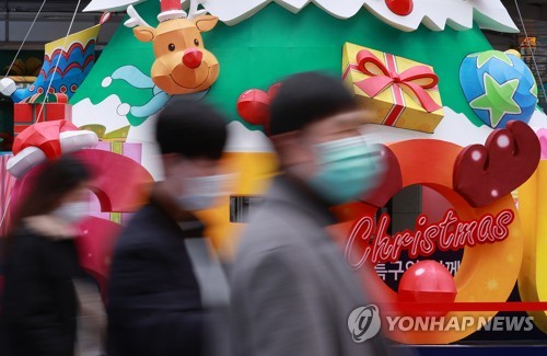 | ▲ 연말은 다가오는데 지난 20일 서울 중구 명동 거리에 설치된 서울 빛초롱 축제 조형물 앞으로 점심시간 마스크를 쓴 시민들이 오가고 있다. [연합뉴스 자료사진] |