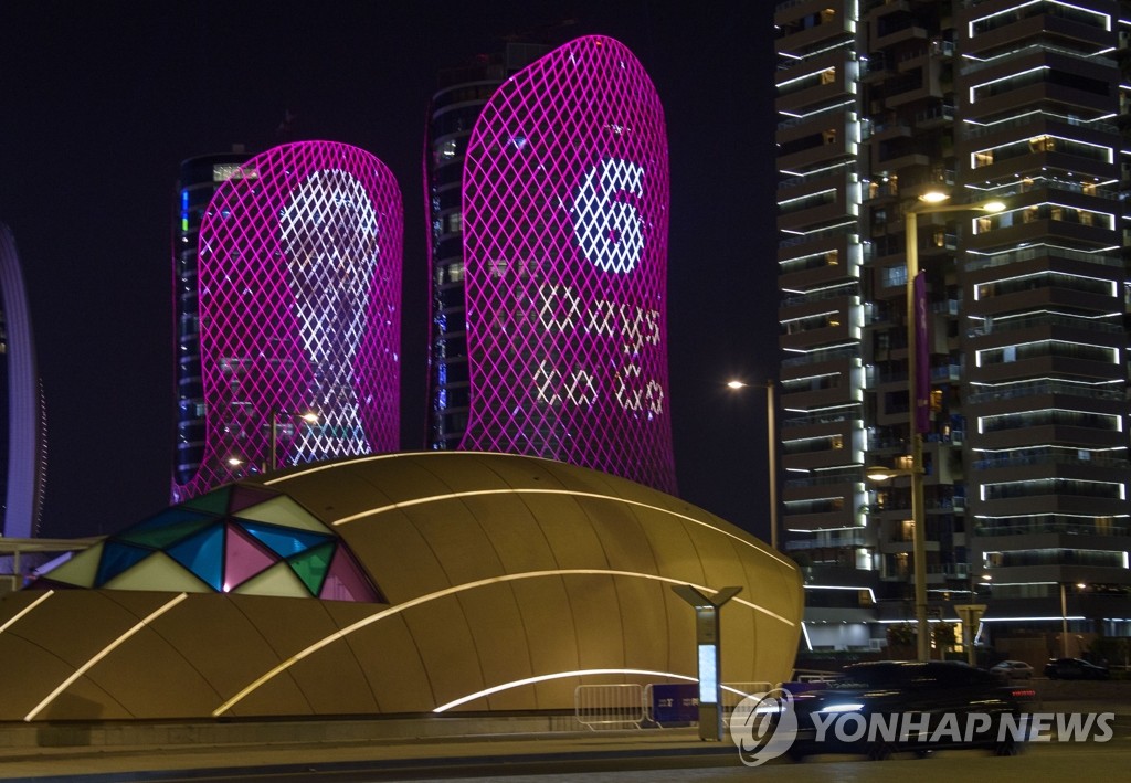 | ▲ '카타르 월드컵 개막까지 6일' 알리는 도하 마천루 (도하 EPA=연합뉴스) 2022 국제축구연맹(FIFA) 카타르 월드컵 개막을 6일 앞둔 14일(현지시간) 카타르 수도 도하의 한 고층 건물 외벽에 월드컵 개막까지 6일 남았다는 문구가 나오고 있다. 중동에서 처음으로 열리는 이번 월드컵은 오는 20일부터 내달 18일까지 진행된다. 2022.11.15 alo95@yna.co.kr |