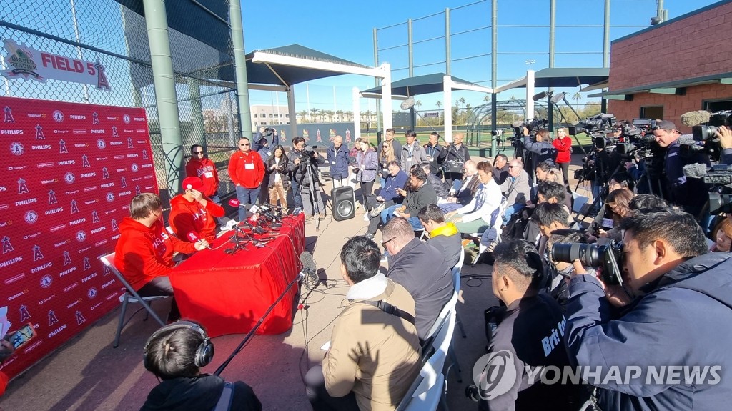 에인절스 구단 관계자는 음향기기에 연결된 마이크를 들고 수십 명의 취재진에게 인터뷰 순서를 소개했다.