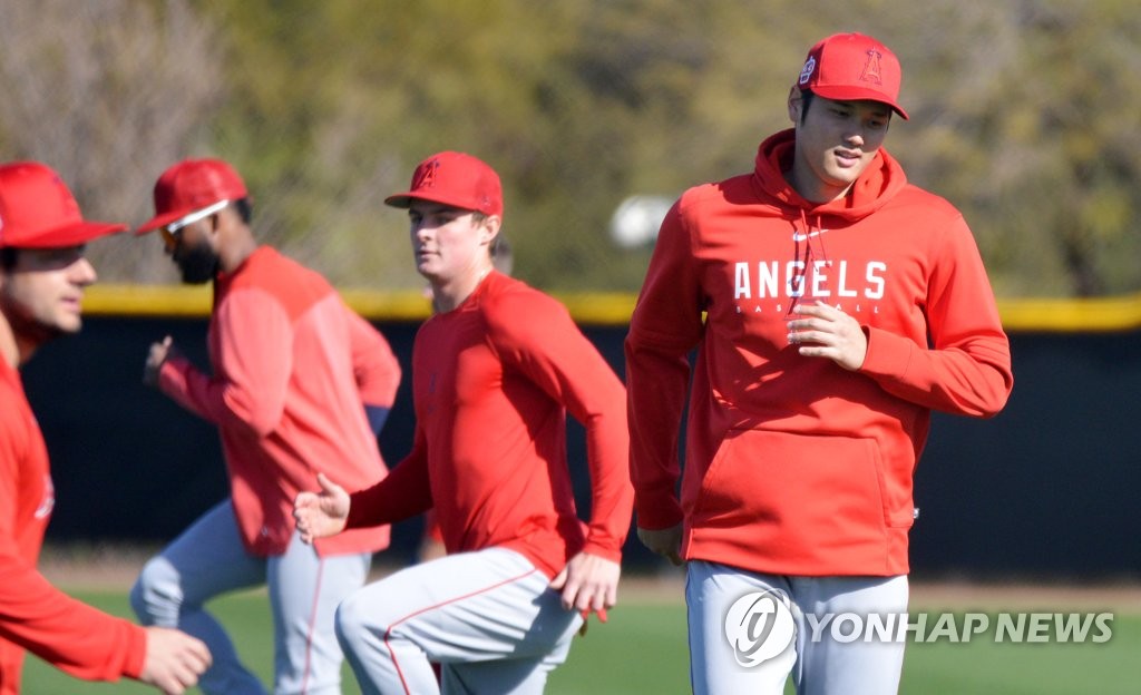 (탬피[미국 애리조나주]=연합뉴스) 김경윤 기자 = 미국프로야구 메이저리그(MLB) 로스앤젤레스 에인절스의 스프링캠프 둘째 날 훈련이 열린 16일(현지시간) 오전 9시 미국 애리조나주 템피 디아블로 스타디움.