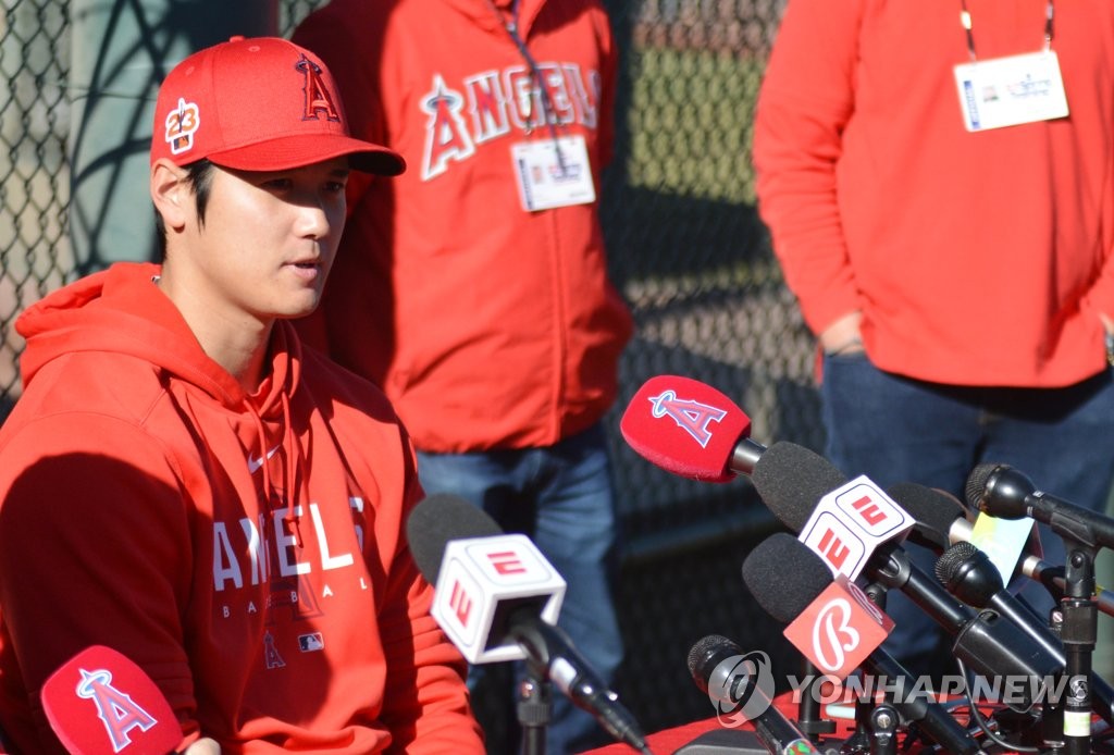 | ▲ 취재진 질문받는 오타니 쇼헤이 (템피[미국 애리조나주]=연합뉴스) 김경윤 기자 = 일본 야구대표팀 간판 오타니 쇼헤이가 17일(한국시간) 미국 애리조나주 템피 디아블로 스타디움에서 열린 미국프로야구 메이저리그(MLB) 에인절스 스프링캠프 기자회견에서 취재진의 질문을 받고 있다. 2023.2.17 cycle@yna.co.kr |