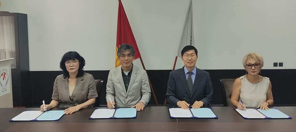 | ▲ 고려인마을, 키르기스스탄 고려인협회와 업무협약 고려인마을은 16일 키르기스스탄 수도 비슈케크에서 국립아시아문화전당, 호남대학교와 함께 키르기스스탄고려인협회와 업무협약을 체결했다. 사진 좌측부터 윤경미 고려인마을 문화사업단장, 최영화 호남대 교수, 이강현 국립아시아문화전당장, 티가이 빅토리아 키르기스스탄고려인협회 부회장. [고려인마을 제공] |
