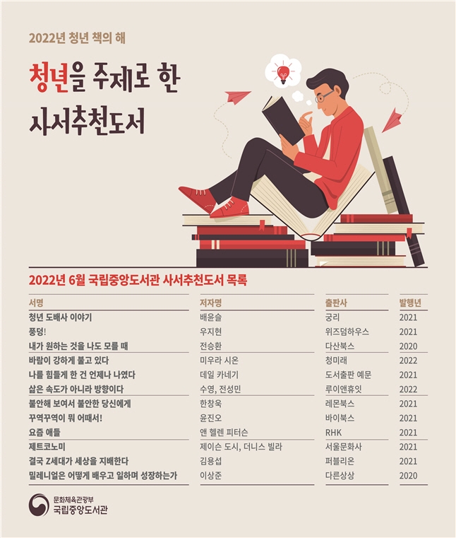 ▲ 국립중앙도서관 6월 추천 도서 = 국립중앙도서관은 '청년'을 주제로 한 6월 사서 추천 도서 목록을 누리집에 공개했다.