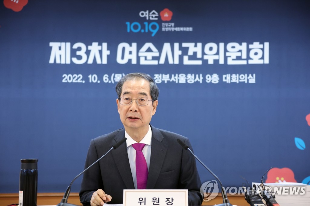 | ▲ 여순사건위원회 주재하는 한덕수 총리 (서울=연합뉴스) 김승두 기자 = 한덕수 국무총리가 10월 6일 정부서울청사에서 열린 제3차 여수·순천 10·19사건 진상규명 및 희생자 명예회복 위원회를 주재하고 있다. [연합뉴스 자료사진] kimsdoo@yna.co.kr |