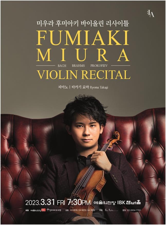 ▲ 미우라 후미아키 바이올린 리사이틀 = 일본의 바이올리니스트 미우라 후미아키(31)가 오는 31일 서울 예술의전당 IBK챔버홀에서 첫 내한 리사이틀을 연다.