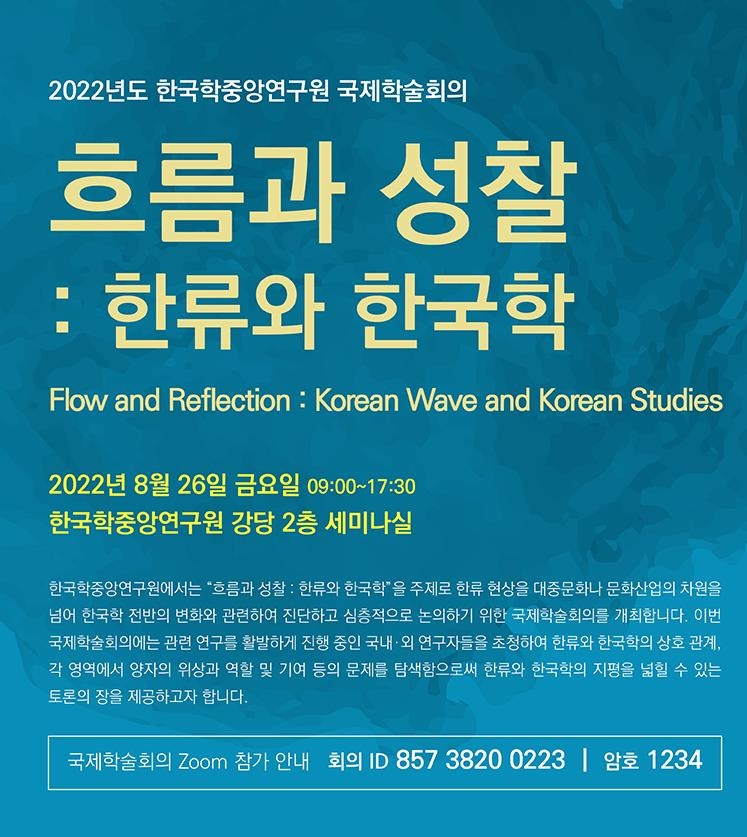 '흐름과 성찰: 한류와 한국학'이라는 주제로, 26일 경기도 성남시 분당구 소재 한국학중앙연구원 세미나실에서 온·오프라인으로 연다.