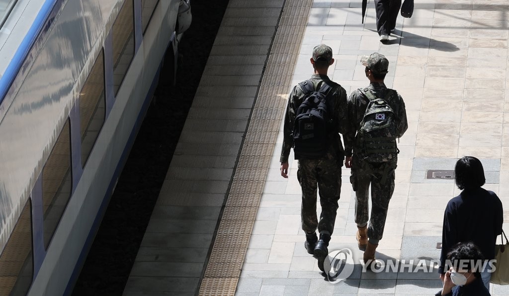 | ▲ This file photo, taken April 29, 2022, shows service members walking by a train at Seoul Station in central Seoul. (Yonhap) |