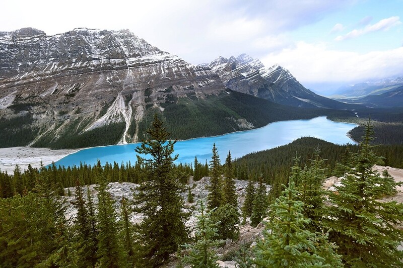 아이스필드 파크웨이를 달리다 만나는 보우강의 수원지 보우 레이크, 빙하가 쓸고 내려간 거대한 U자형 계곡에 선명한 청록색을 띤 채 펼쳐진 페이토 레이크는 멋진 풍광을 자랑한다.