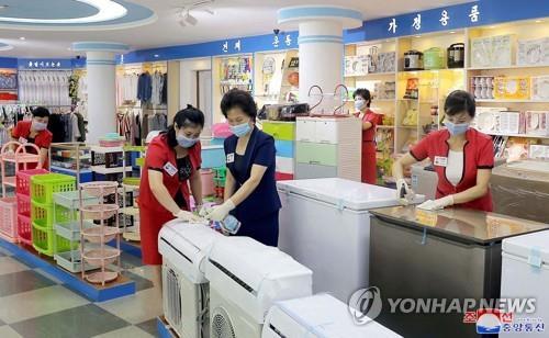 | ▲ In this 2020 file photo released by North Korea's official Korean Central News Agency, store workers disinfect a shop in Pyongyang as the North steps up efforts to prevent the spread of COVID-19. (For Use Only in the Republic of Korea. No Redistribution) (Yonhap) |