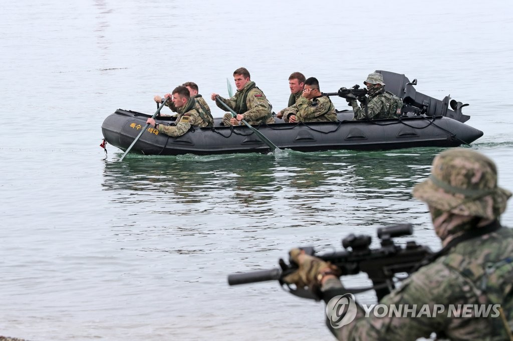 The exercise mobilized reconnaissance units from the South's 1st Marine Division and the U.S. Marine Corps, as well as troops from Britain's Royal Marines Commandos. It marked British troops' first participation in the exercise.