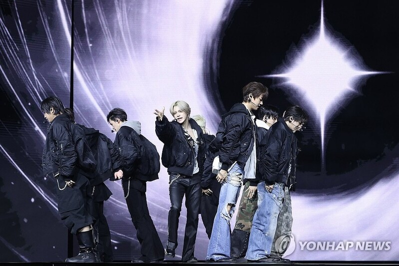 | ▲ 앤팀, 한국 데뷔 앨범 발매 쇼케이스 (서울=연합뉴스) 강민지 기자 = 그룹 앤팀(&TEAM)이 28일 서울 용산구 블루스퀘어에서 열린 한국 데뷔 미니 1집 '백 투 라이프'(Back to Life) 발매 기념 미디어 쇼케이스에서 타이틀 곡 무대를 선보이고 있다. 2025.10.28 mjkang@yna.co.kr |