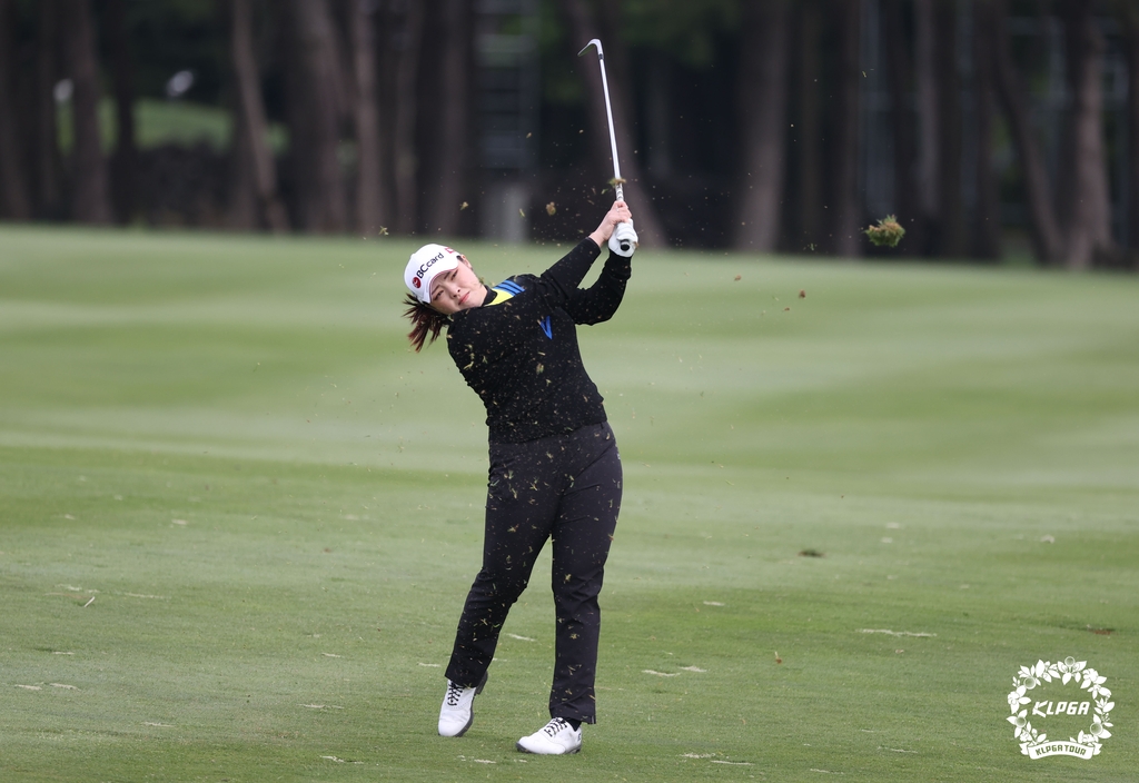 | ▲ 바람을 뚫고 아이언샷을 때리는 장하나. [KLPGA 제공. 재판매 및 DB 금지] |