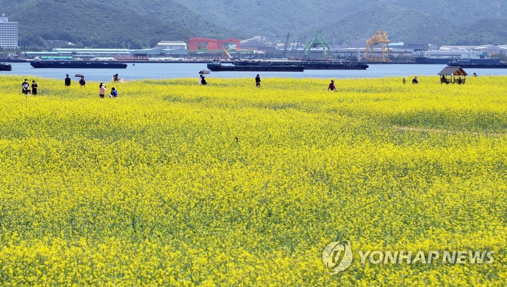 지난 13일부터 임시 개방한 창원 마산해양신도시를 찾은 시민들은 유휴부지 11만㎡에 조성된 유채꽃밭과 청보리밭을 거닐며 여유를 즐겼다.