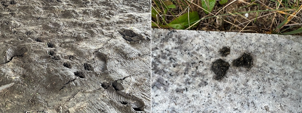 | ▲ 수달의 발자국(왼쪽)과 배설물(오른쪽) [원주시 제공.재판매 및 DB 금지] |