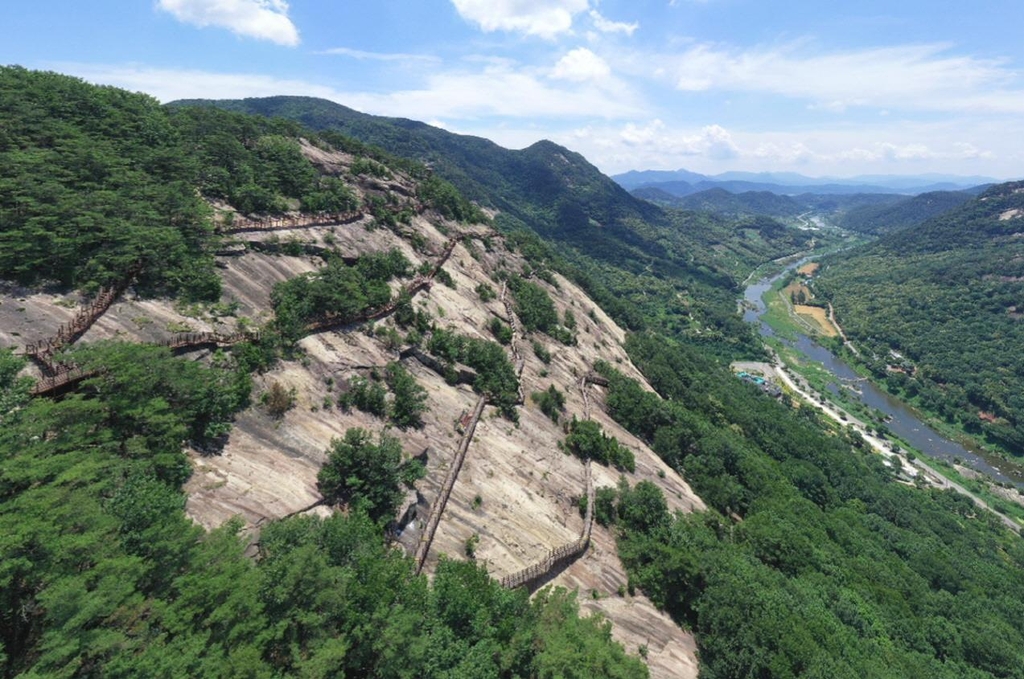 22일 군에 따르면 지난 3월부터 진행한 하늘길 연장 및 안전시설 확충과 낙석 방지시설 설치 등을 마무리하고 7월 1일부터 통행을 재개한다.