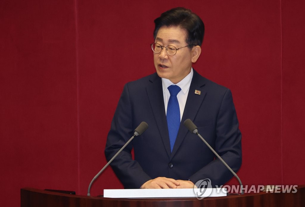 Lee, chairman of the main opposition Democratic Party (DP), made the pledge during an address at the National Assembly, claiming that the Yoon administration is bent on "raids, arrests and political strife" without taking care of the economy and diplomacy.