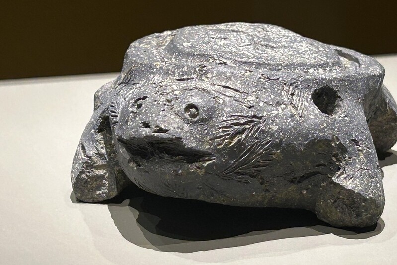 | ▲ 동물 모양의 벼루 (경주=연합뉴스) 김예나 기자 = 9일 경북 경주시 국립경주박물관의 '소소하고 소중한' 전시에서 선보인 동물 모양 벼루. 앞다리 양쪽에 구멍이 뚫려 있어 휴대용으로 사용했을 가능성이 제기된다. 2024.12.9 yes@yna.co.kr |