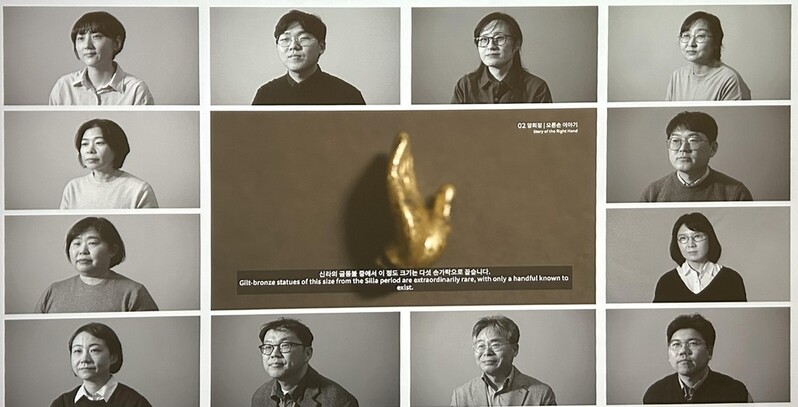 | ▲ 큐레이터 12명의 선택은 (경주=연합뉴스) 김예나 기자 = 9일 경북 경주시 국립경주박물관의 '소소하고 소중한' 전시실에서 12명의 큐레이터가 문화유산을 소개하는 영상이 나오고 있다. 2024.12.9 yes@yna.co.kr |