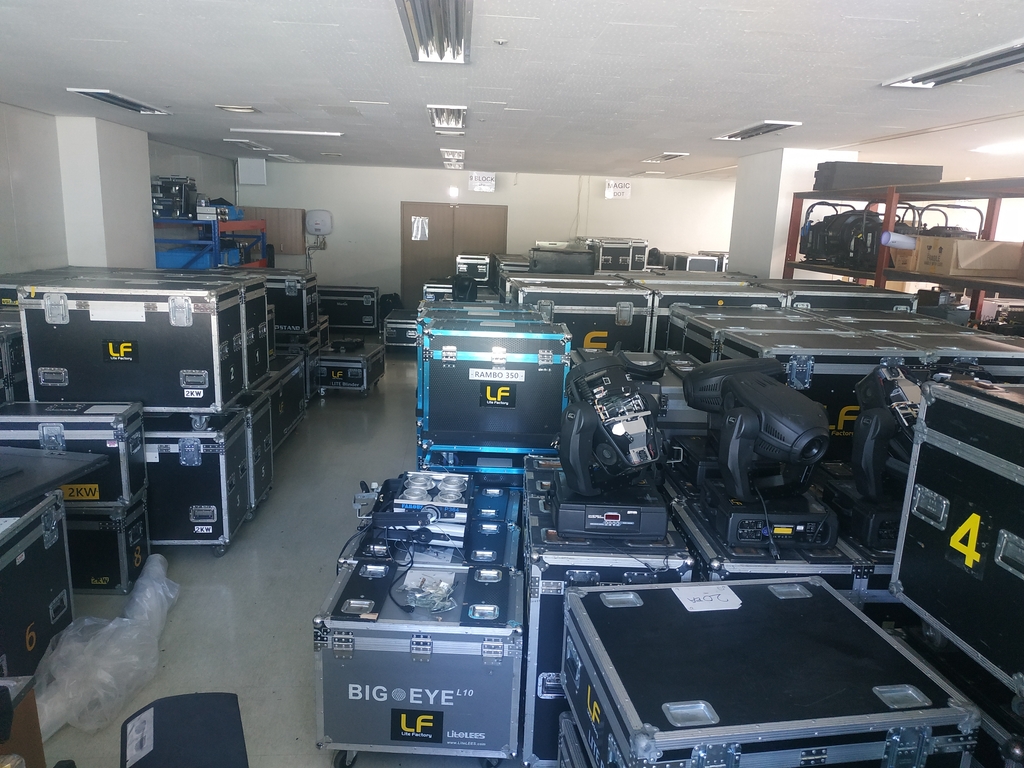 | ▲ 창고에 쌓인 음악 프로덕션 장비 [라이브팩토리 제공. 재판매 및 DB 금지] |