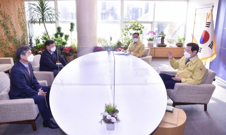 이용섭 광주시민프로축구단 구단주(광주광역시장)는 5일 오전 시청 접견실에서 새롭게 선임된 광주FC 최만희 대표이사, 김호영 감독을 만나 시민들을 위한 구단으로 거듭날 수 있도록 노력해 달라고 당부했다.