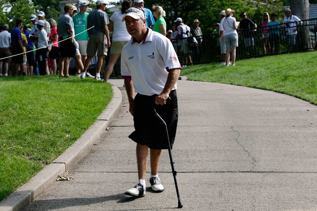 | ▲ 지팡이를 짚고 PGA투어 대회를 걸어서 관람하는 그레고리. [PGA투어 제공. 재판매 및 DB 금지] |