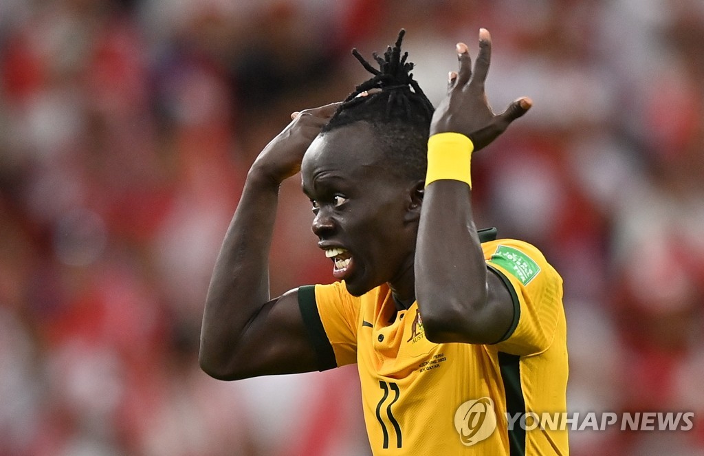 14일(한국시간) 카타르 알리얀에서 열린 2022 국제축구연맹(FIFA) 카타르 월드컵 대륙 간 플레이오프에서 호주의 본선행이 확정되는 순간이었다.
