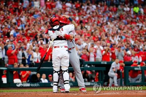 | ▲ 세인트루이스를 떠난 뒤 2019년 부시 스타디움을 찾아 몰리나와 포옹하는 푸홀스 [게티이미지/AFP=연합뉴스 자료사진] |