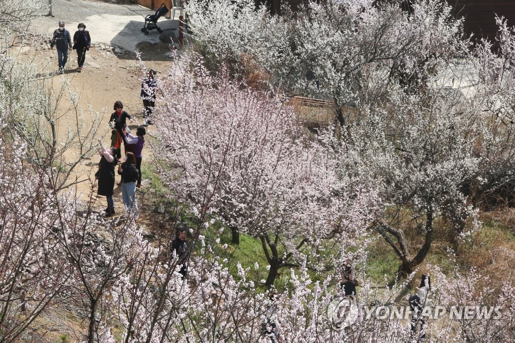 | ▲ 성큼 곁에 다가온 봄 (양산=연합뉴스) 이정훈 기자 = 낮 기온이 20도 가까이 오른 15일 경남 양산시 원동면 낙동강 주변 매화밭에서 시민들이 만개한 매화를 사진에 담기에 바쁘다. 2022.3.15 seaman@yna.co.kr |
