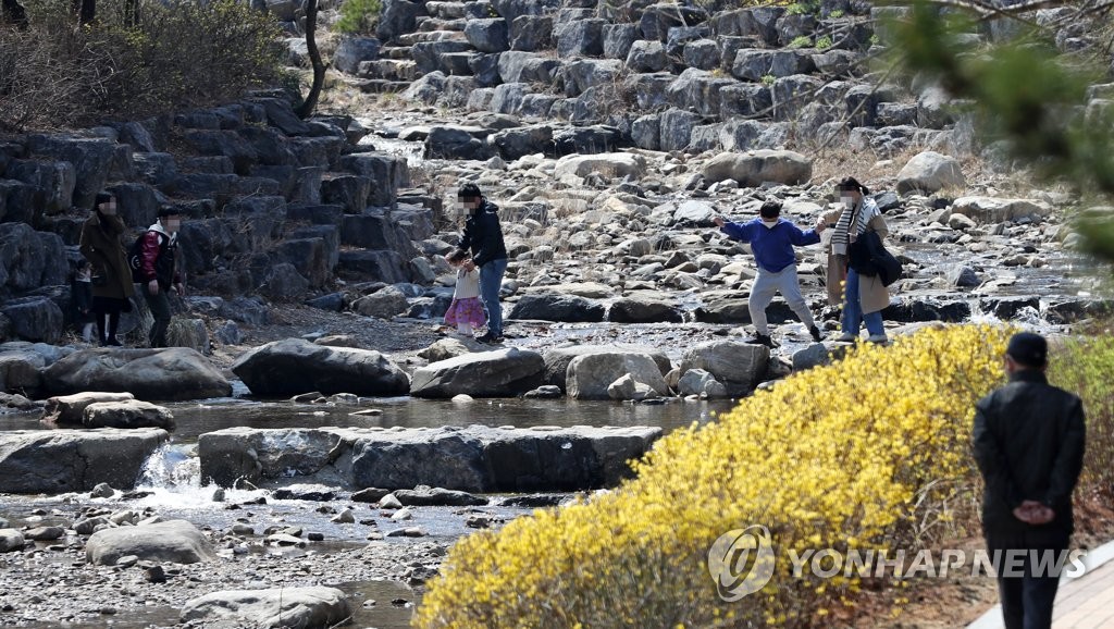 | ▲ 강릉 솔향수목원의 봄 (강릉=연합뉴스) 유형재 기자 = 봄기운이 완연한 2일 강원 강릉시 솔향수목원에 나들이 온 가족이 계곡의 돌다리를 건너고 있다. 2022.4.2 yoo21@yna.co.kr |