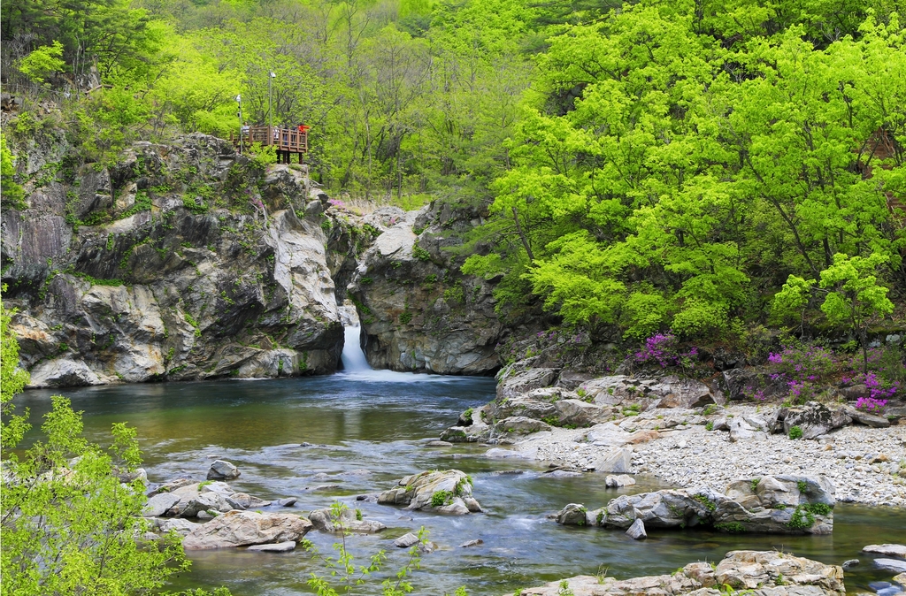 두타연은 6·25전쟁 이후 사람의 발길이 닿지 않았던 생태계의 보고로서 계곡을 따라 투명한 물과 기암괴석이 조화를 이루는 비경을 자랑한다.