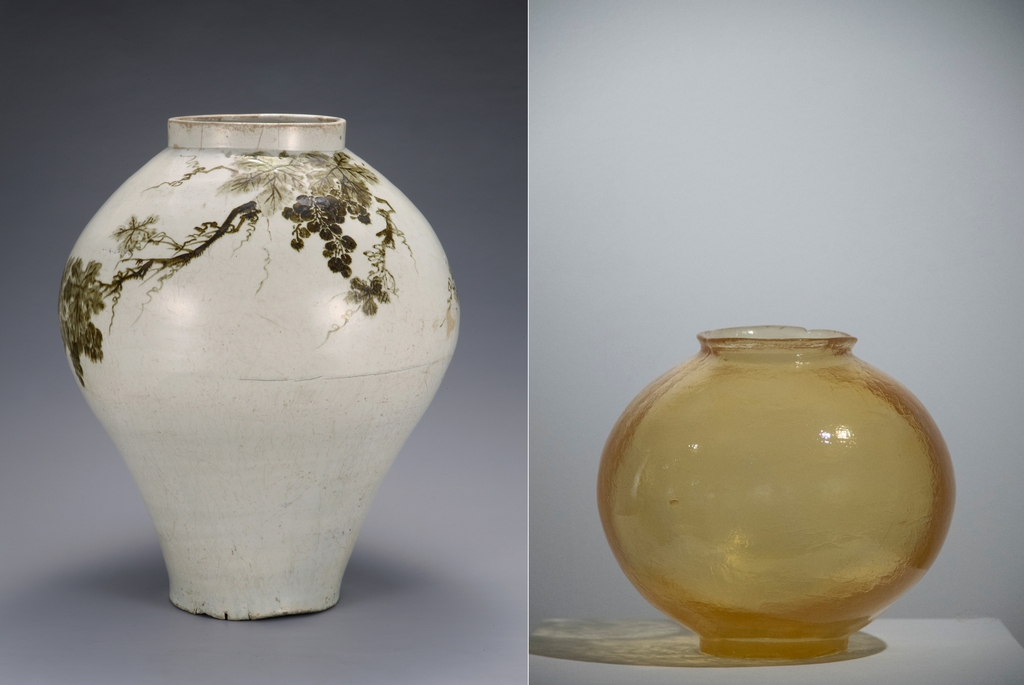 | ▲ 백자 철화포도문 항아리(왼쪽)와 신미경 작품 [이화여대박물관 제공. 재판매 및 DB 금지] |