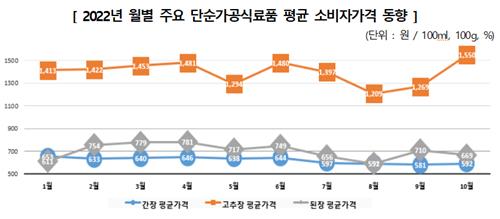 된장, 간장, 고추장의 원료가 되는 미국산 대두, 중국산 건고추의 2022년 7월 대비 10월 수입가격과 제조업체 출고가격이 상승하는 등 가격 인상 요인이 발생했기 때문이다.