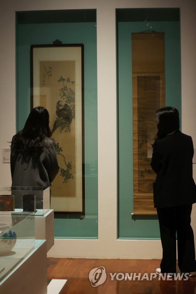 | ▲ 최초 공개된 '봉후도'와 '해도' (서울=연합뉴스) 진연수 기자 = 15일 서울 종로구 국립민속박물관에서 개막을 앞둔 길상(吉祥) 특별전 '그 겨울의 행복'에서 관계자들이 봉후도(민속99737)와 해도(민속89051)를 살펴보고 있다. 코로나19 팬데믹 장기화 등 여러 재난으로 지친 국민들에게 행복과 희망의 메시지를 전달하고자 기획된 이번 전시에서는 생활 속에서 바라는 좋은 일을 상징적으로 표현하는 길상 관련 소장품 십장생도 등 200여 점을 선보인다. 2022.11.15 jin90@yna.co.kr |