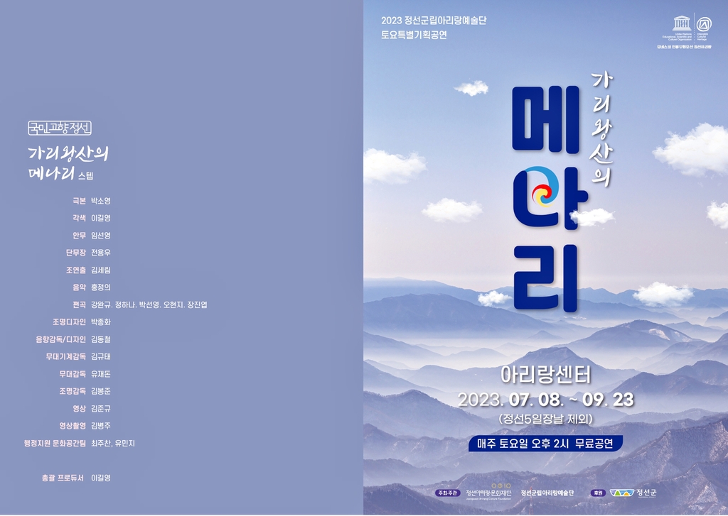 (정선=연합뉴스) 배연호 기자 = 정선군립아리랑예술단은 아라리촌을 배경으로 제작한 소리극 '가리왕산의 메나리'를 8일 강원 정선아리랑센터 아리랑홀에서 선보인다고 5일 밝혔다.