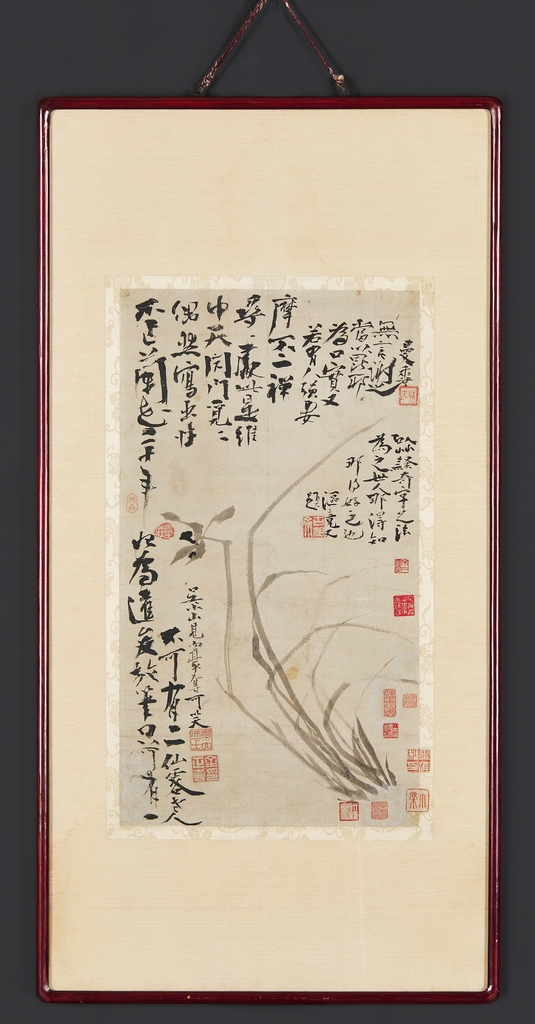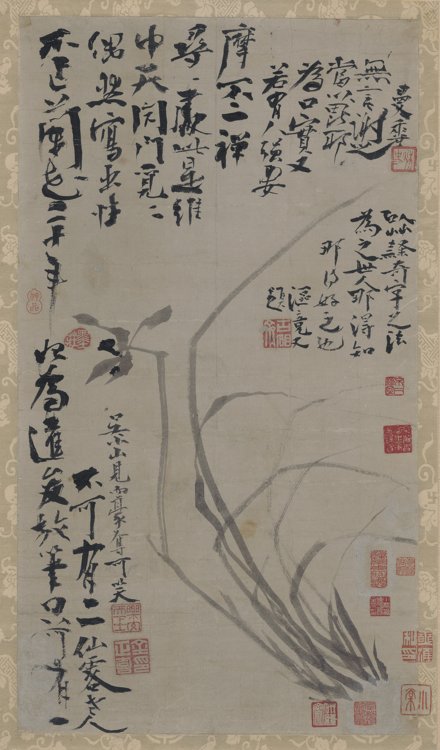 위쪽에 쓴 글에는 '난초 그림을 그리지 않은 지 20년인데 뜻하지 않게 깊은 마음속의 하늘을 그려 냈다'고 적혀 있고, 아랫부분에는 '초서(草書)와 예서(隷書)'로 그렸다고 쓰여 있다.