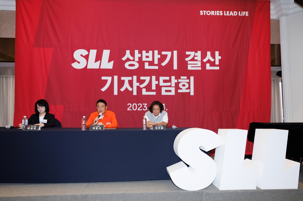 | ▲ SLL 상반기 결산 기자간담회 왼쪽부터 SLL 박성은 제작1본부장, 박준서 제작총괄, 김건홍 제작2본부장. [SLL 제공. 재판매 및 DB 금지] |