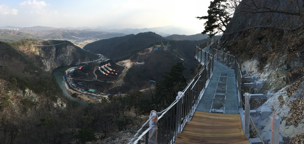 (원주=연합뉴스) 김영인 기자 = 출렁다리로 유명한 원주 간현관광지 '소금산 그랜드 밸리' 스카이 타워 등 일부 시설이 시범 개장한다.