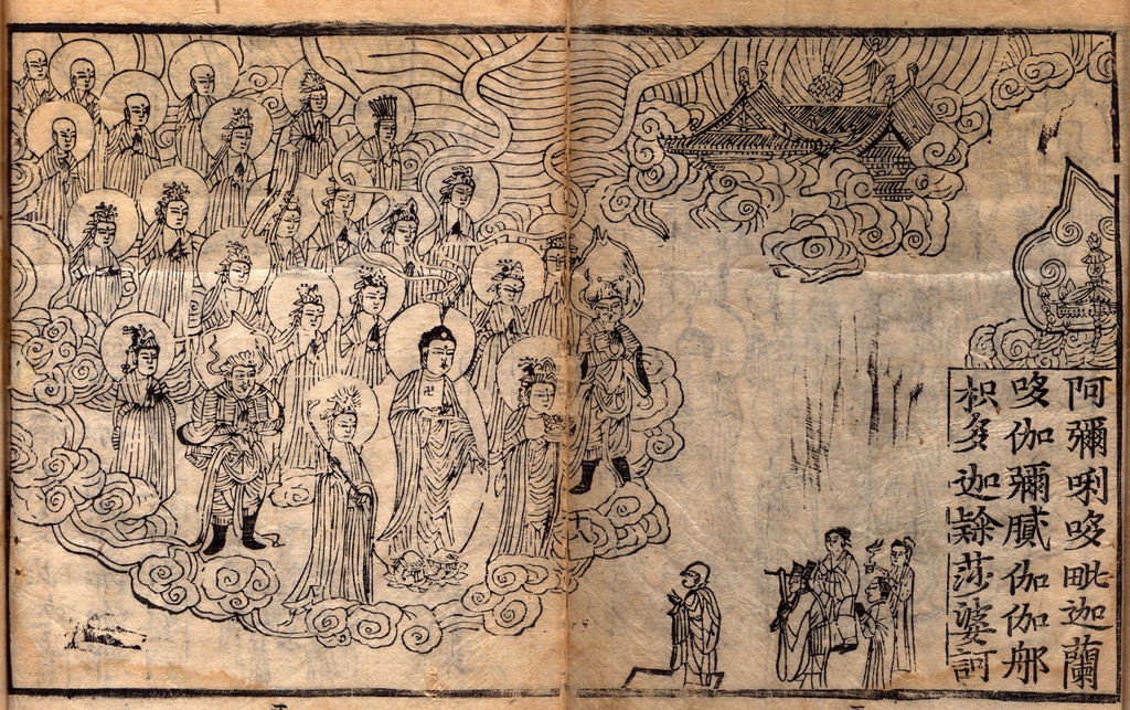 | ▲ '덕주사판 불설아미타경' 중 아미타래영도 [원주 명주사 고판화박물관 제공. 재판매 및 DB 금지] |