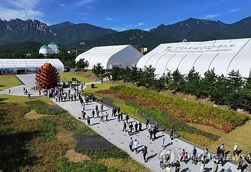 | ▲ 강원세계산림엑스포 행사장 둘러보는 관람객. [촬영 양지웅] |