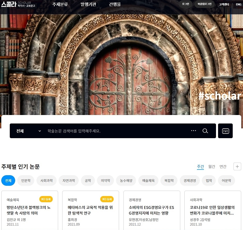 (서울=연합뉴스) 성도현 기자 = 교보문고가 디지털 전환 전략에 따라 학지사와 공동으로 운영하는 학술논문 서비스 '스콜라' 사이트를 8일 전면 개편했다.