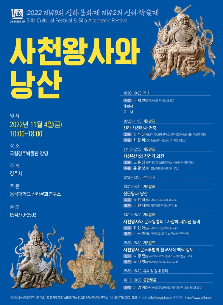 올해 학술제는 '사천왕사와 낭산'을 주제로 그간의 발굴·연구 성과를 검토할 예정이다.