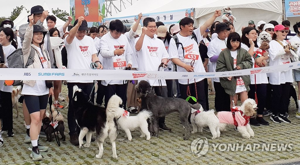 | ▲ 제주 반려동물 축제 (제주=연합뉴스) 27일 제주시 애월읍 새별오름 일대에서 열린 '2023 제주 반려동물 문화축제'에서 반려동물을 키우는 제주도민과 관광객 등이 '반려견과 함께 달리는 런닝멍' 프로그램에 참여하고 있다. 2023.5.27 [제주도 제공, 재판매 및 DB 금지] bjc@yna.co.kr |