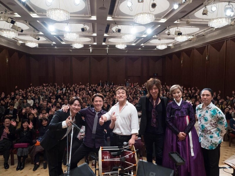 ▲ 도쿄서 펼친 신한악(新韓樂) 공연 민영치(왼쪽에서 3번째) 씨가 2015년 12월 2일 도쿄에서 개최한 '신한악×트라이소니크' 공연을 마치고 출연진과 찍은 기념사진. [민영치 제공]