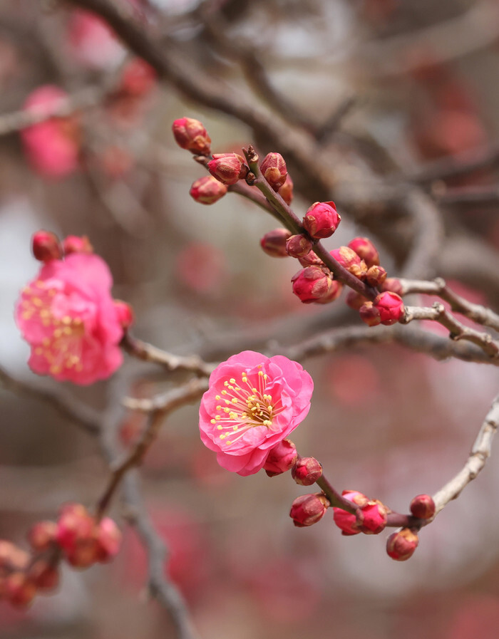 This photo, taken Jan. 19, 2026, shows red plum flowers that have bloomed at a park in the southeastern city of Busan. (Yonhap)
