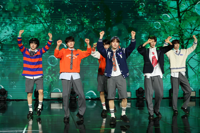 South Korean boy group The Wind performs during a showcase in Seoul on Oct. 7, 2024, to promote the release of the group's third mini album "Hello:My First Love." (Yonhap)