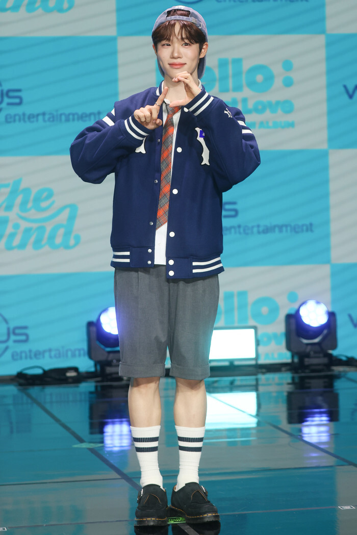 Kim Hee-soo, a member of South Korean boy group The Wind, poses for a photo during a showcase in Seoul on Oct. 7, 2024, to promote the release of the group's third mini album "Hello:My First Love." (Yonhap)