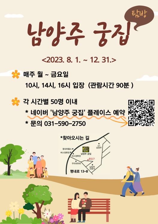 이 기간 매주 월∼금요일 하루 3회 예약제로 운영되며 회당 50명 이내로 입장할 수 있다. 네이버 '남양주 궁집'에서 예약할 수 있다.